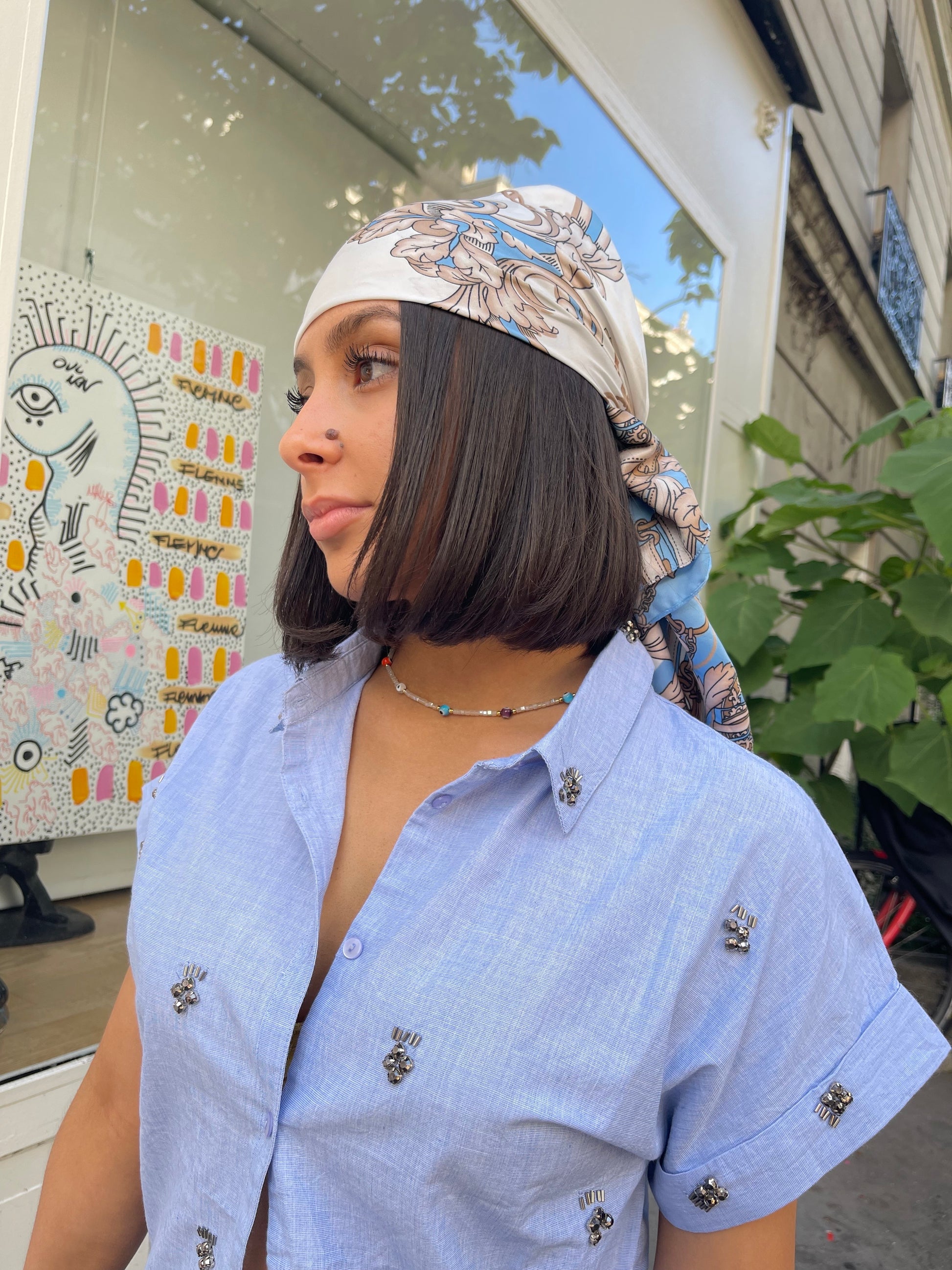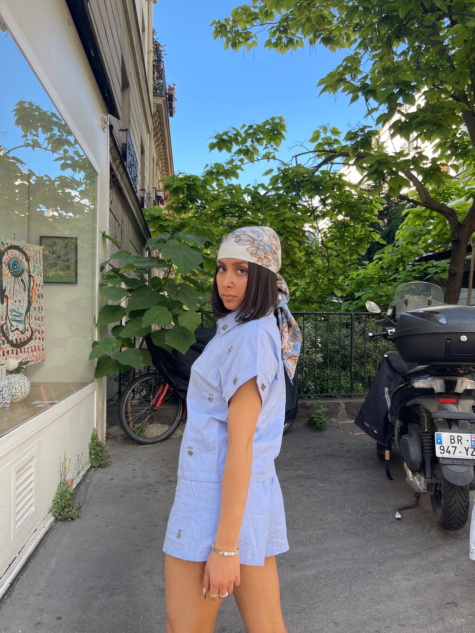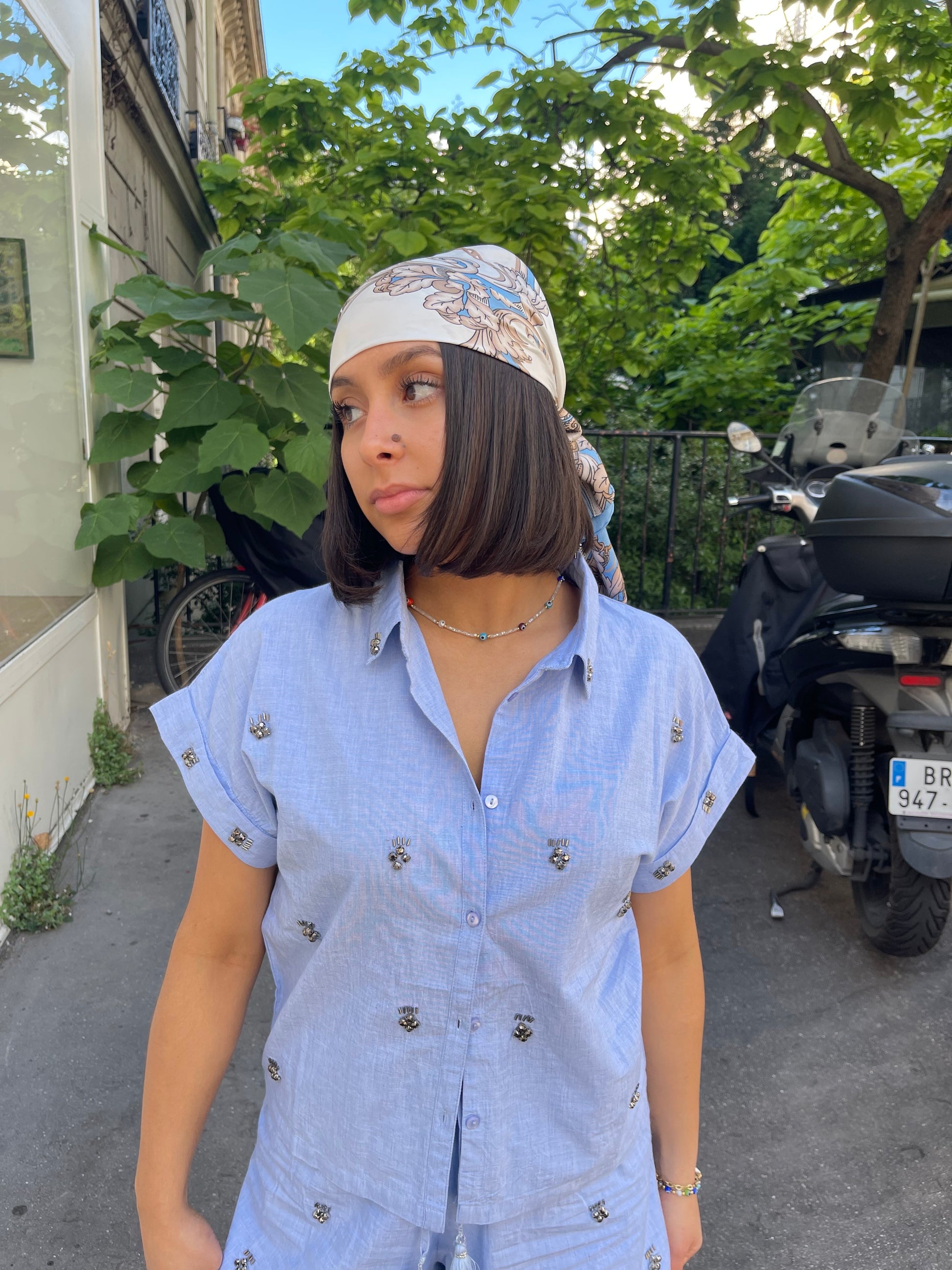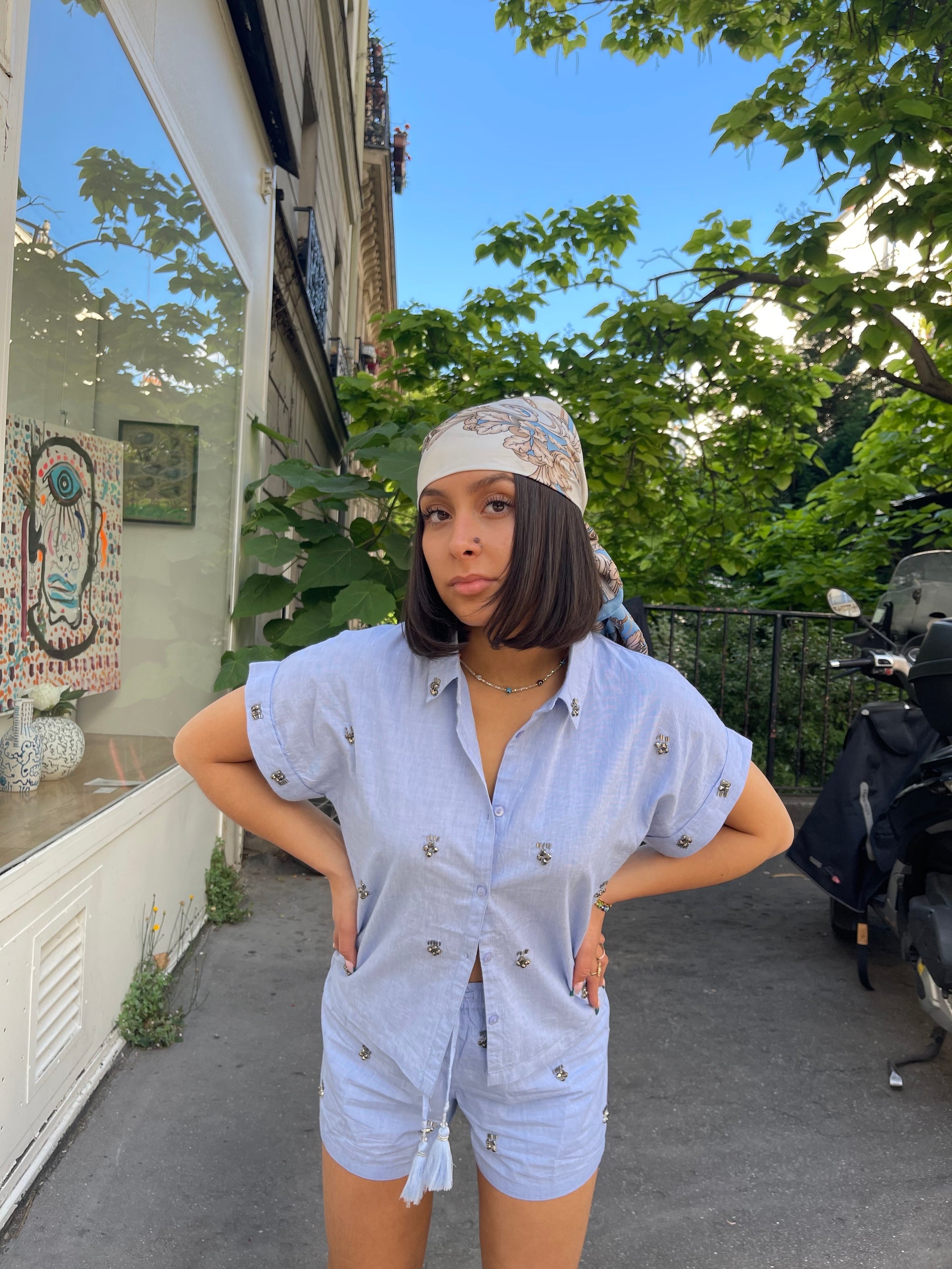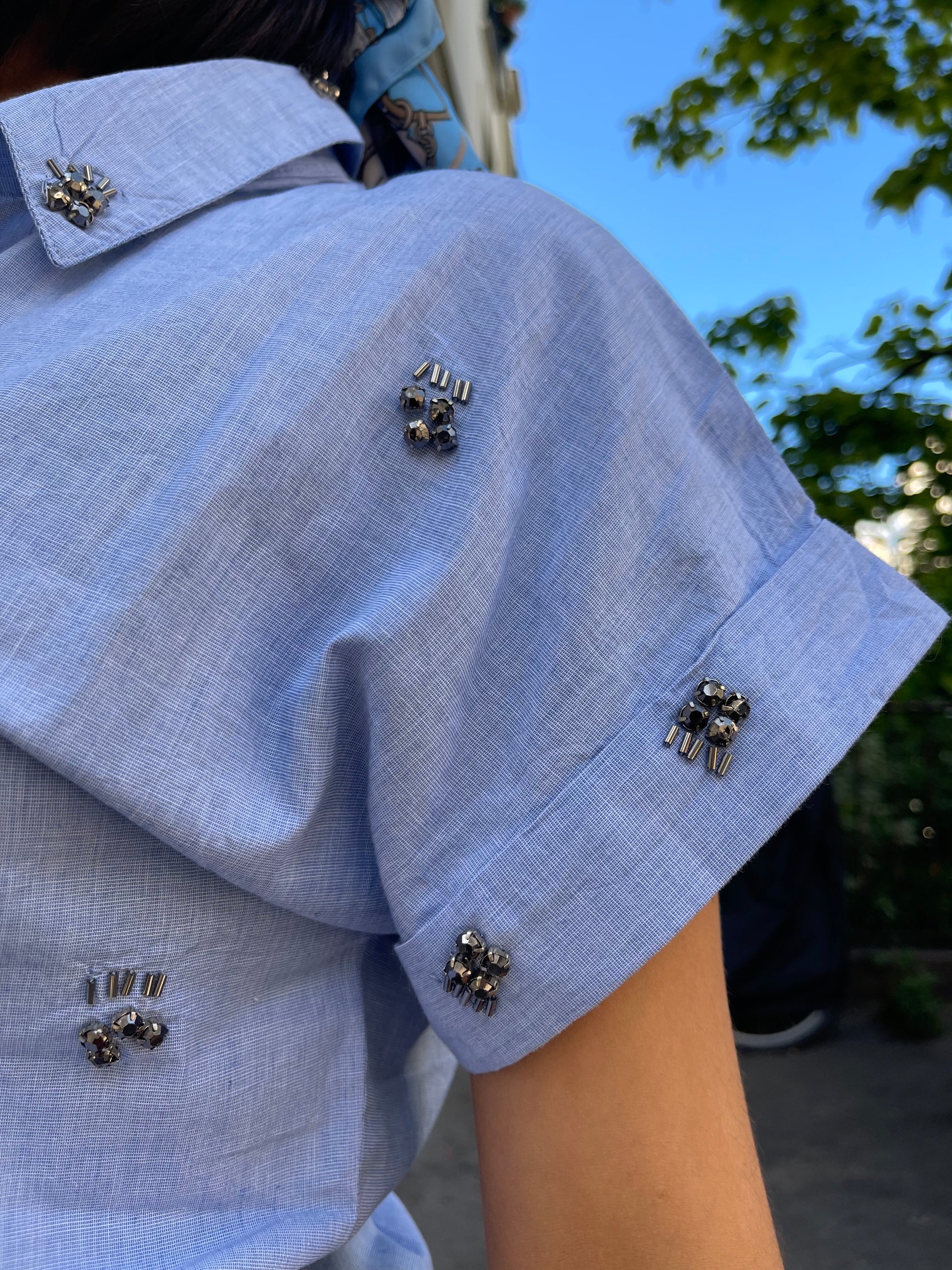 Chemise 100% coton brodée de bijoux à manches courtes.